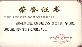 2017年1月代理人牛愛周被評(píng)為“2016年度三星專利代理人”。